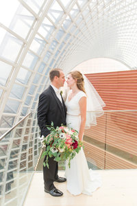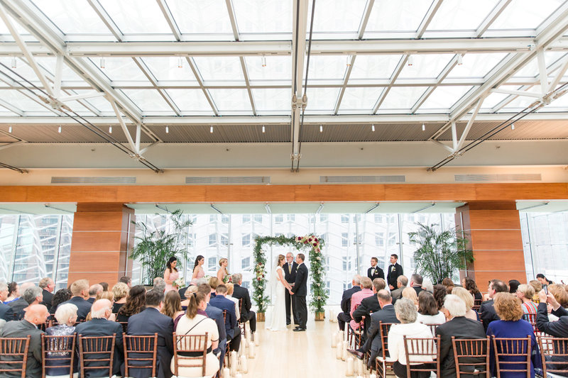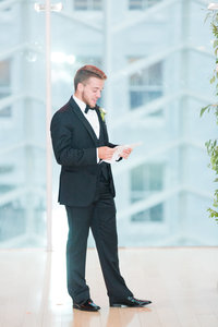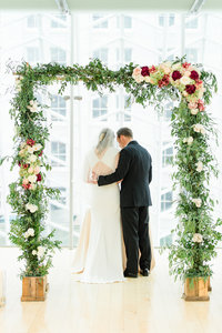 We typically schedule 45 minutes for bride + groom portraits if you're sharing in a first look. If you're not sharing in a first look, you can expect to have approximately 10 minutes for bride and groom photos. For this reason, we highly encourage a first look because your photos are the first things to get cut short if something runs behind.