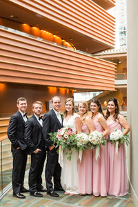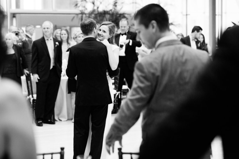 We actually prefer that you share your first dance right at the door. This will allow for your guests on both balconies and around the room to witness your first and parent dances. It also is easier for us to photograph than up on the catwalk or on the dance floor and will provide you with a better backdrop for photos.